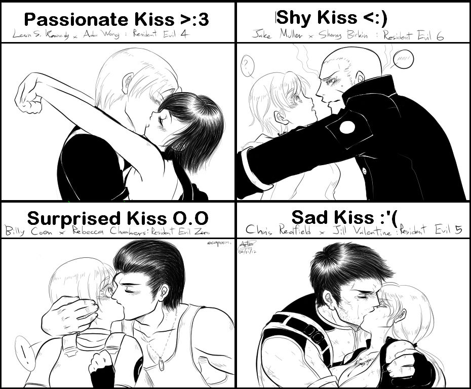 Các kiểu hôn trong Resident Evil: 1 - Hôn nồng nàn; 2 - Hôn bẽn lẽn; 3 - Hôn ngỡ ngàng; 4 - Hôn chia ly :'(